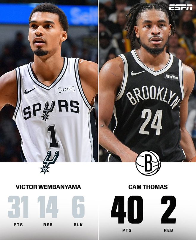 这场比赛托马斯与文班亚马形成了对轰的态势,文班亚马21中9拿31+14+6帽,托马斯25中11拿40分2篮板0助攻,最终还是文班亚马带队取胜,小火车还是摆烂的神器,要让他扛起球队取胜难度还是很大。