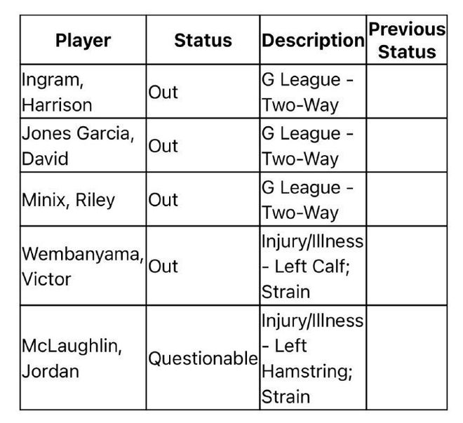 至于湖人核心文班亚马将继续缺席,马刺依然采取稳妥策略,且本赛季缺少文班亚马的11场比赛,收获8胜3负战绩表现神勇。此外,马刺的3位双向合同球员被下放发展联盟,也将缺席与湖人的比赛。