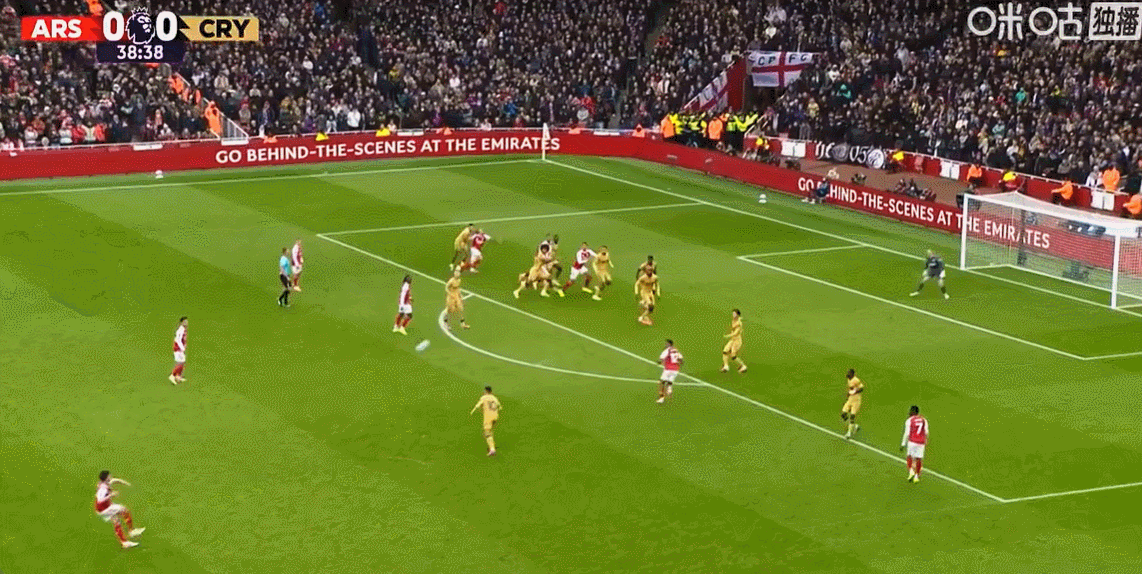 此役第39分钟,赖斯主罚前场任意球传中策动攻势,埃泽前插到禁区中路迎高空球凌空抽射破门弑杀旧主,该球不仅直接帮助阿森纳斩获3分,更是埃泽加盟枪手打入的联赛处子球。