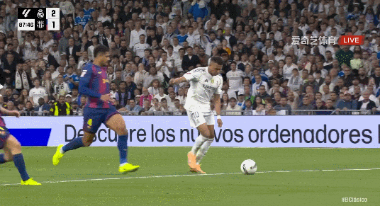 西甲第10轮,皇家马德里对阵巴塞罗那。上半场皇马进攻效率极高,姆巴佩冷射进球被吹,维尼修斯造点也被VAR吹掉;贝林厄姆灵巧直塞, 姆巴佩单刀球破门;费尔明跟进推射破门;贝林厄姆门前笑纳大礼破门。