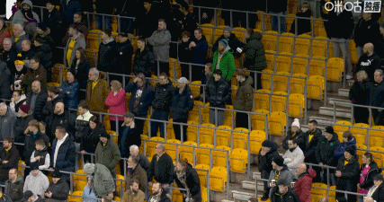 镜头给到看台空位,部分狼队球迷比赛第15分钟才入场抗议复星国际