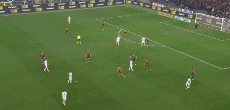第68分钟,热那亚长传发动反击,维蒂尼亚抓住机会破门,1-2!